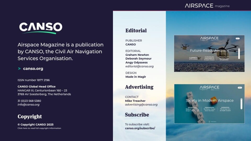 Airspace Magazine is a publication by CANSO, the Civil Air Navigation Services Organisation.