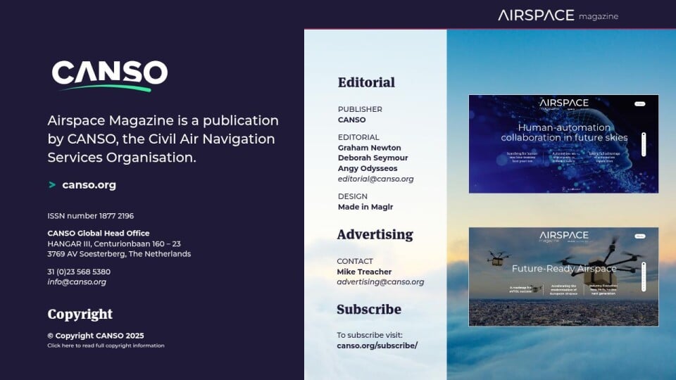 Airspace Magazine is a publication by CANSO, the Civil Air Navigation Services Organisation.